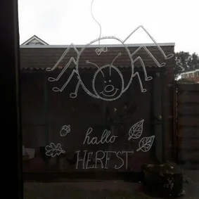 Voor raamschilderingen gebruik ik een Edding 4095 kalk marker. Dat is de beste die ik tot nu toe heb getest. Maar je kunt ook glasstiften van de Action gebruiken.