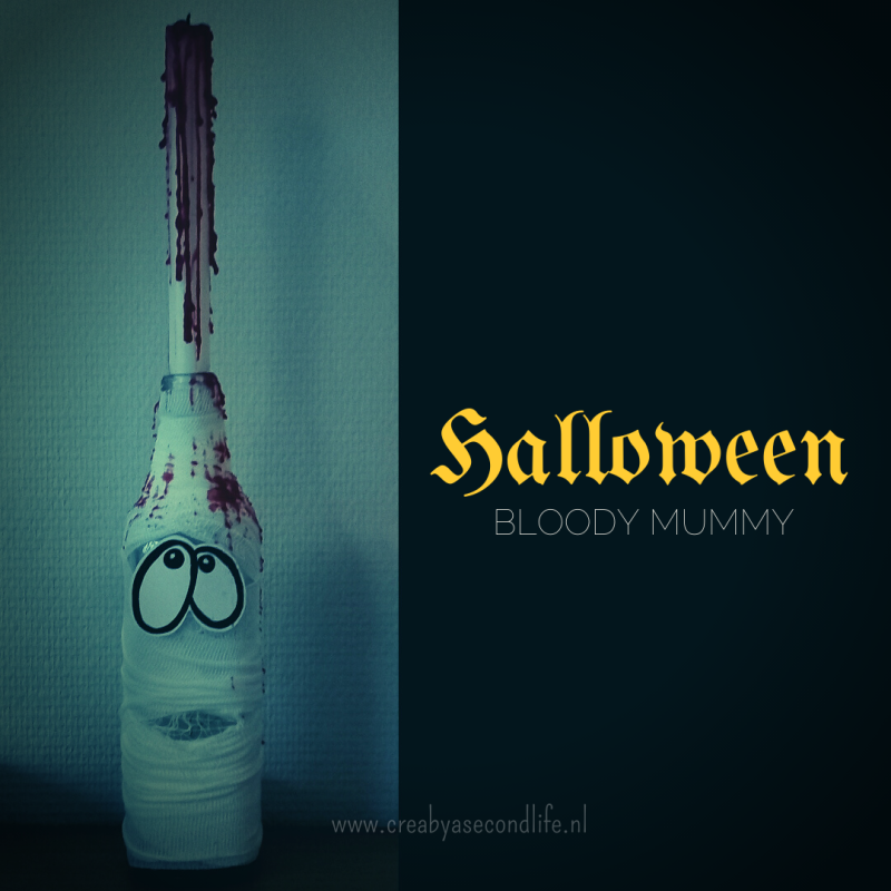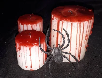 Spookachtig creepy decoratie maak je heel makkelijk zelf, zoals deze bloody candles.